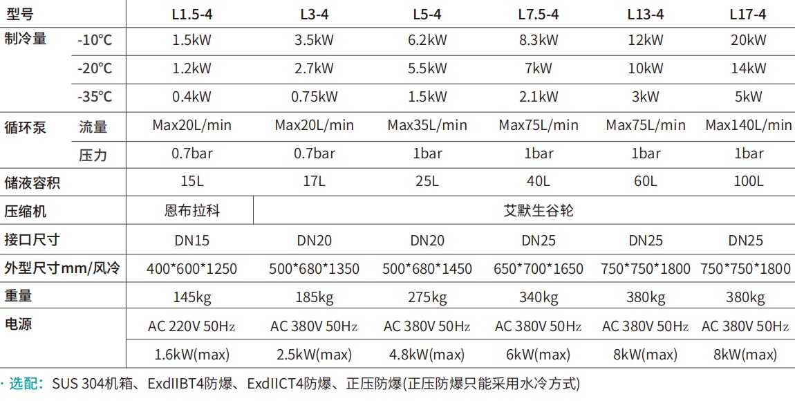| -10℃ | -20℃ | -35℃ | 流量 | 壓力 | ||||||||